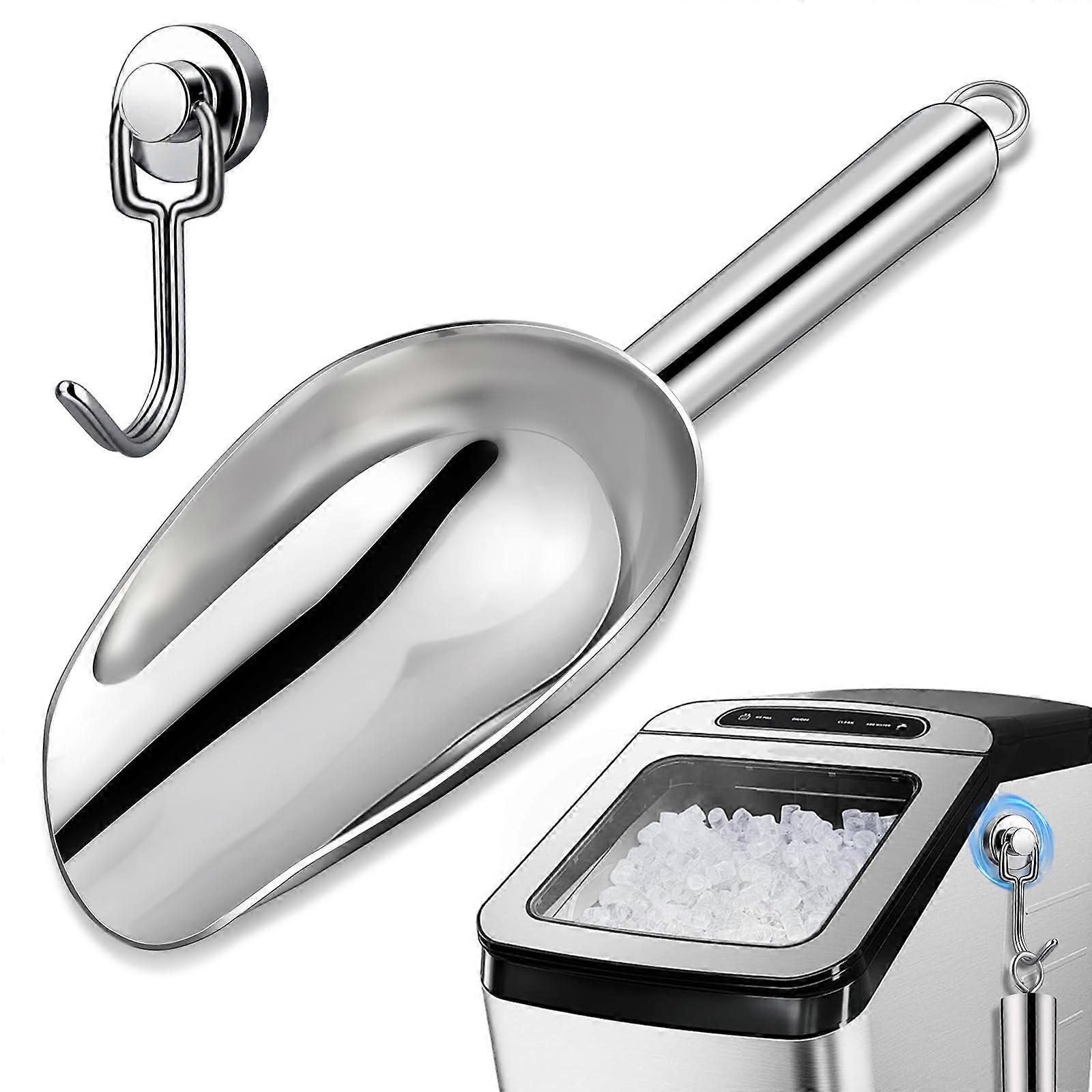 3oz Stainless Steel Ice Scoop with Magnetic Hook, Rustproof Dishwasher Safe for Freezer, Ice Bucket, Dog Food, Flour