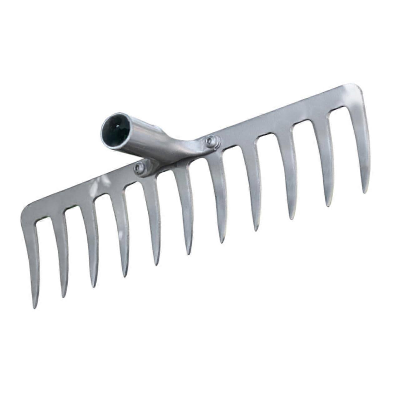 Heavy Duty Metal Garden Rake for Soil Loosening and Grass Removal Durable Steel Yard Tool Silver