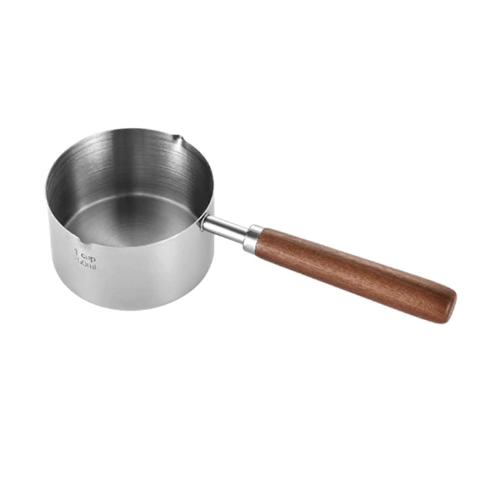 Stainless Steel Sauce Pot Set with HeatResistant Walnut Handle, Drip Condiment Bowls for Restaurants (8.5x5x12.5cm)
