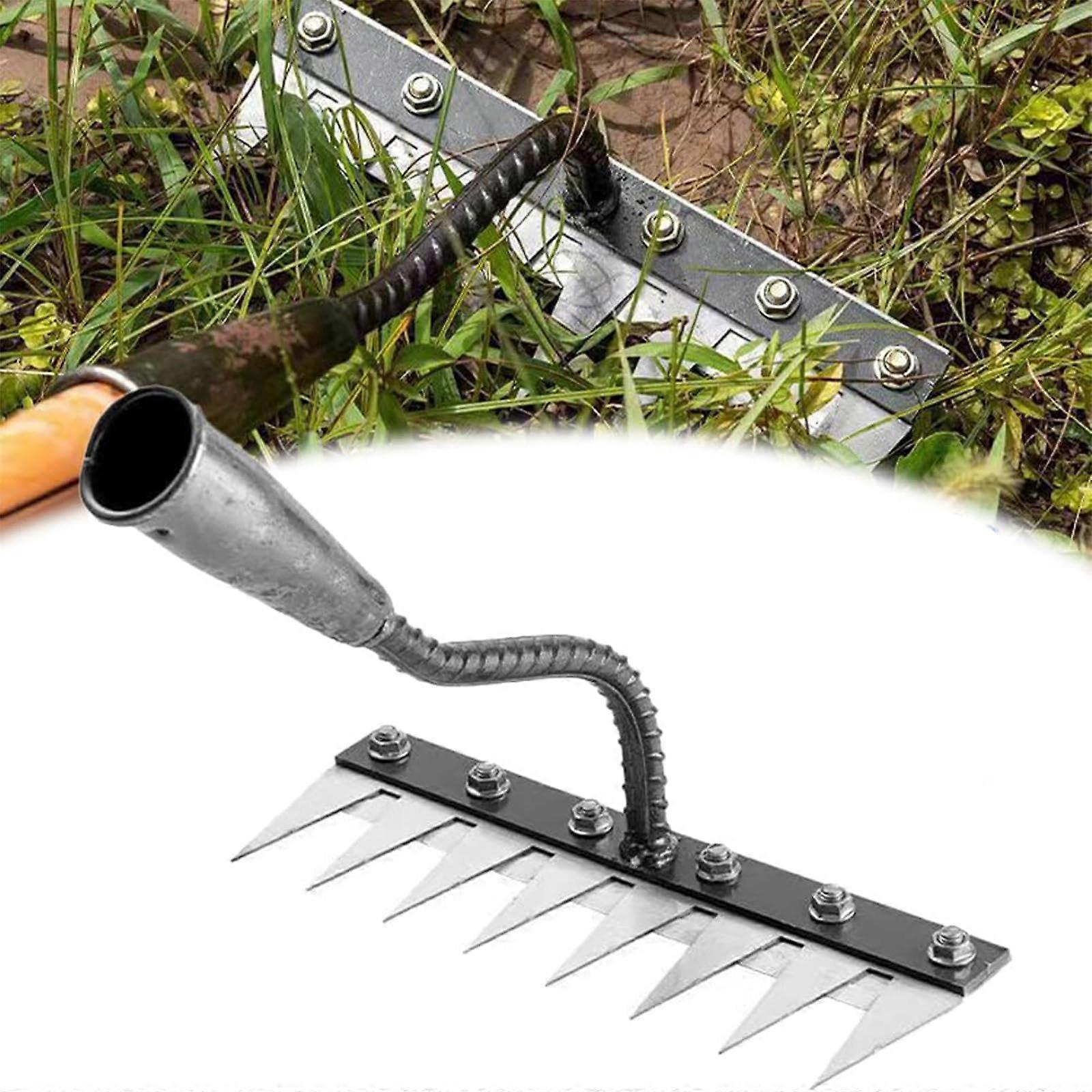Garden Weeding Rake 7Tooth Heavy Duty Carbon Steel Tool for Lawn Soil Loosening and Weed Removal