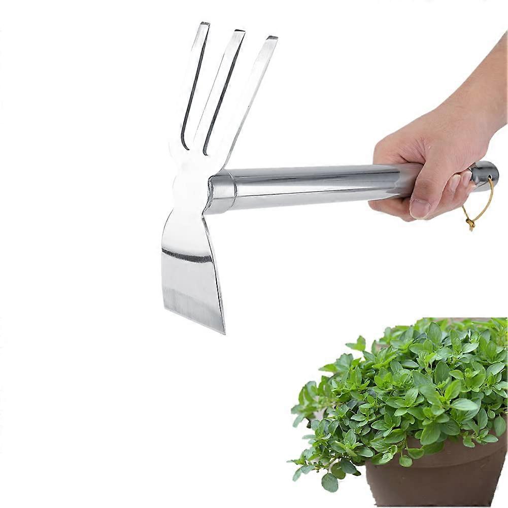 Garden Hand Rake Steel Hoe Dual Purpose Tool with Ergonomic Rubber Grip for Soil Cultivation