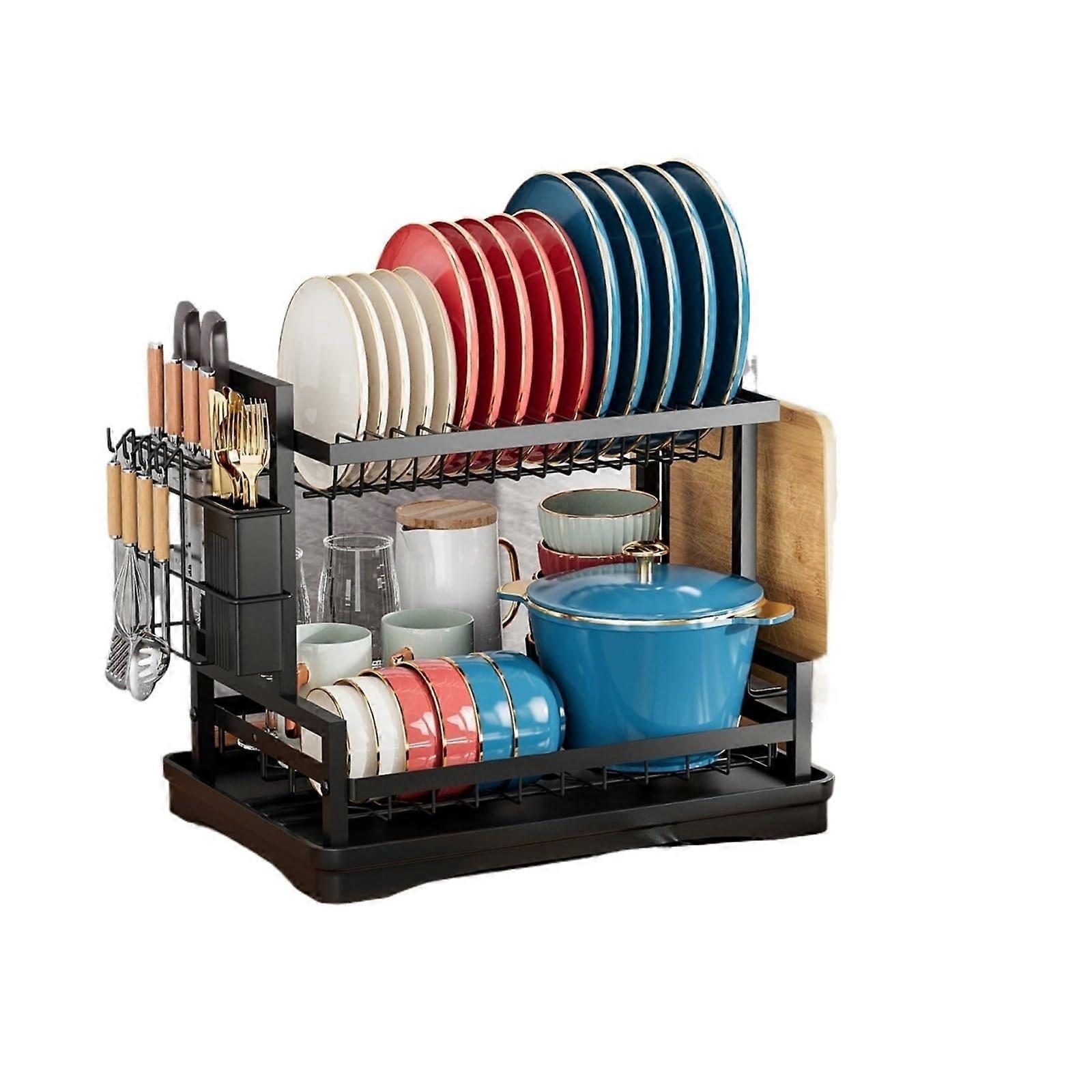 2 Tier Dish Drying Rack for Kitchen Counter, Large Capacity Stainless Steel with Utensil Holder