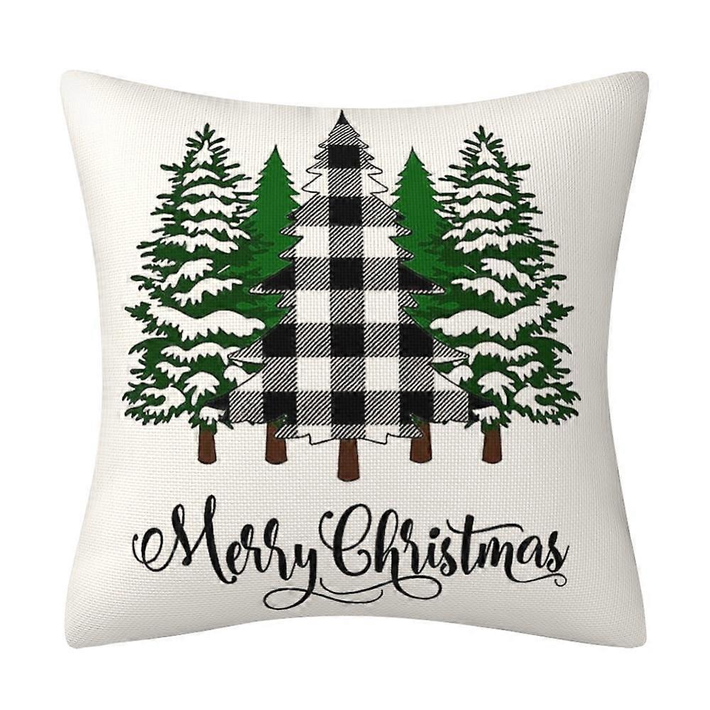 Christmas Pillow Case: White Black Plaid, Xmas Tree, Wreath, Truck Pattern | Compatible with Standard Cushions | Holiday Throw Cover for Home,