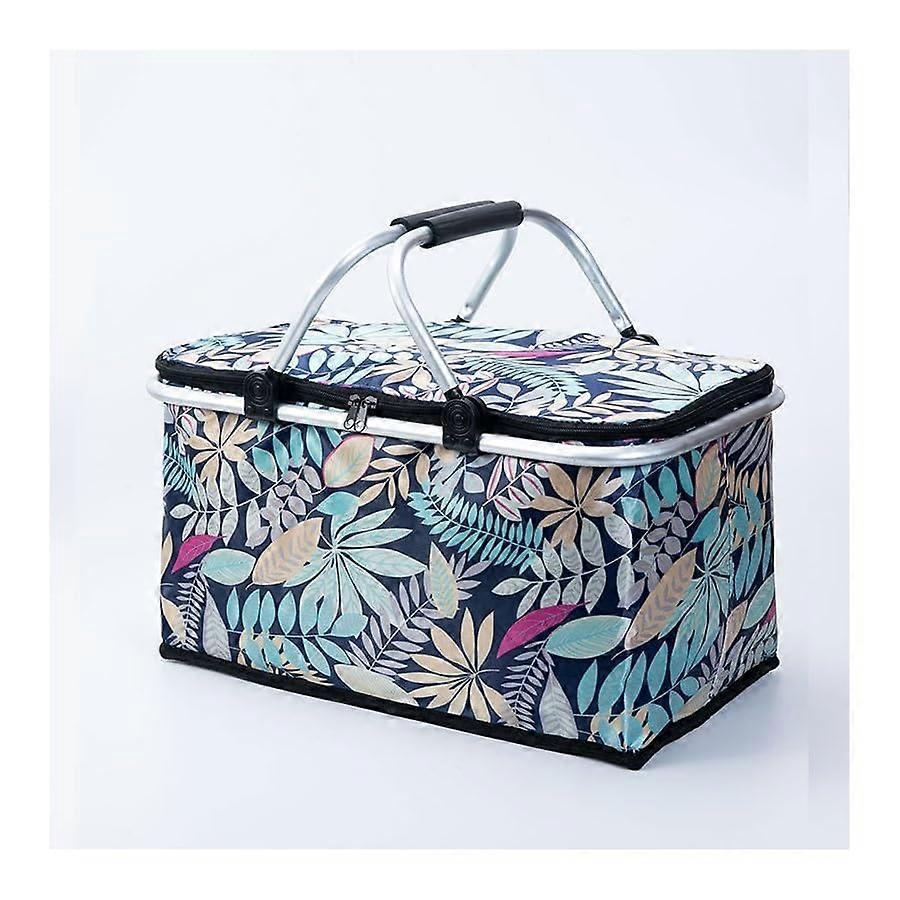 Insulated Picnic Basket 23L Foldable Cooler Tote with Aluminum Handle for Outdoor, Grocery and Travel (Blue Maple Leaf)