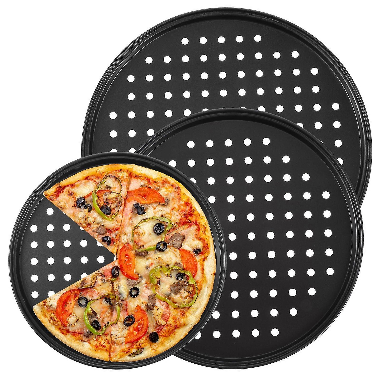 3 Pack Non Stick Pizza Pans with Holes, Carbon Steel Round Bakeware for Oven 9 10 12 Inch Baking at Home or Restaurant