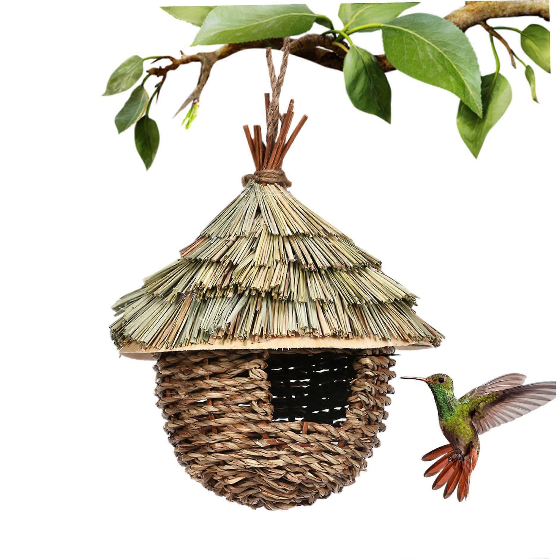 Hummingbird House for Outdoors Woven Straw Nest 6.7x8.7 Inch Hanging Birdhouse for Garden Decor and Bird Lovers
