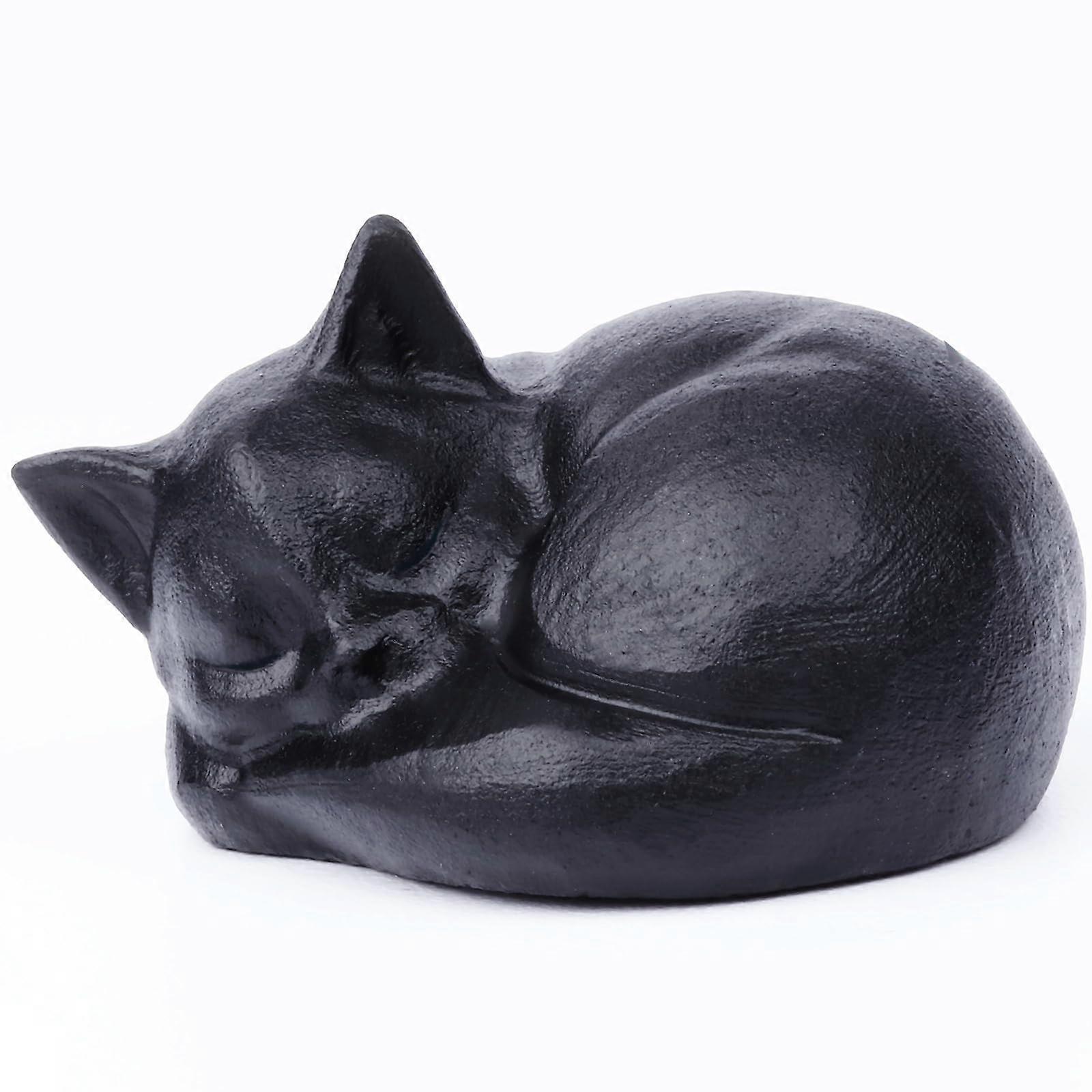 Black Obsidian Cat Figurine Sleeping Kitten Crystal Statue for Home Office Decor Gifts