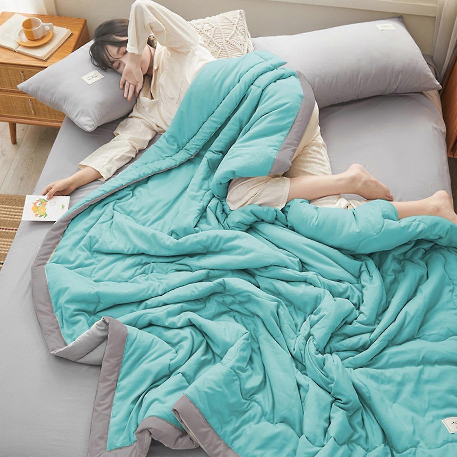 Machine Washable Lightweight Cotton Quilt - Ideal For AirConditioned Rooms All-Season Cool Comfort Easy Care Feature: Material: 98%Cotton,2%Spandex Color: Blue Product size:200x150cm/78.74x59.05in Packing size:35x35x3cm/13.77x13.77x1.18in Net weight: 900g/1.98lb Gross weight: 900g/1.98lb Descrition: 【Keep cool】:The summer cooler comforter is made of 98%Cotton,2%Spandex fiber with a porous, seamed and hollow structure, making it very so wicking and breathable. Perfect for hot sleepers who suffer from hot flashes and night sweats, you will feel much cooler than with other cotton blankets. The fabric is lightweight and silky, so it won't stick to your skin or feel stuffy, so you stay cool all summer long and sleep more comfortably on hot nights. 【Keep sweat free all seasons】: This Summer cooler Quilt can Regulation Humidity -wicking, speed up circulate airflow, bring your temperature down, so your skin can keep dry and cool without night sweats, and help you away from feelings whether it's summer or winter. cool-feeling fabric features high specific heat capacity, which means this cool blanket has More Powerful heat absorption and heat dissipation capacity than normal fibers, so it will bring a cool night's sleep. 【Cool & breathable experience】: Sleep with a cool temperature can fall asleep faster and get a sleep. This blanket is skin-friendly, It is better to use this Ice blanket near to the skin, so your skin could feel cool soon. Summer cooler Quilt has a better Ice effect when used with fans , which can quickly reduce the by about 2-4 degrees, even one degree makes a Huge differences when sleeping. 【Easy wash and care】: This all-season cool blanket is machine washable directly, very easy care and convenient in our daily use. The high-cost real stitching keeps the fiberfill stay in place in the past thousands of machine wash, will not Transfer. This cool blanket is designed with a machine-washable for easy care and maintenance. NOTE: This comforter can’t be dry, it will affect the cooler value. [2.] It is better to use this bedding comforter directly(No flat sheet), it is skin-friendly. 【 gift and multiple uses】: This summer Ice blanket can be used as an Summer Sleep blanket, nap blanket, travel blanket, car blanket, sofa blanket and anywhere you want a comfy blanket to keep cool; This cold blanket is also perfect as a birthday gift, holiday gift, anniversary gift, Mother's Day, Father's Day, and Valentine's Day. Package Content: 1x Quilt ❤Hello, Dear Customer, (ლ╹◡╹ლ) Welcome to ☛WICVIK☚ Store ! Our store is seriously making home products, Clearance and price reduction sales, We look forward to your first visit! ❤Quality material: It is made of High Quality Material, durable and non-toxic, not easy to fade and break, can be applied for a long time, The product in our shop are made of high quality materials, The latest design in 2024 is the best gift for you. This product makes your home fun! ❤Delicate Gifts: These household and decorative items can be given as gifts to family or friends during important holiday events such as Christmas, Halloween, Easter, birthday parties, Valentine's Day, July 4th, Independence Day, Mother's Day, Father's Day, weddings, graduation parties, school starts, celebrations, anniversaries, etc. ❤Clearance sale, Welcome to our store for purchase! Our store includes home cleaning, home decoration, home appliances, home storage, home yards, toys, sports and outdoor, home kitchens, furniture, bedding, electronic products, automotive products, lighting and other products, including products you need in spring, summer, autumn, and winter seasons, fully meeting your shopping needs. ❤Satisfaction Guarantee: We are dedicated to providing customers with good products and high- quality services. If you have any questions, please do not hesitate to contact us at any time. We will solve your problem within 24 hours! Have a happy shopping experience!