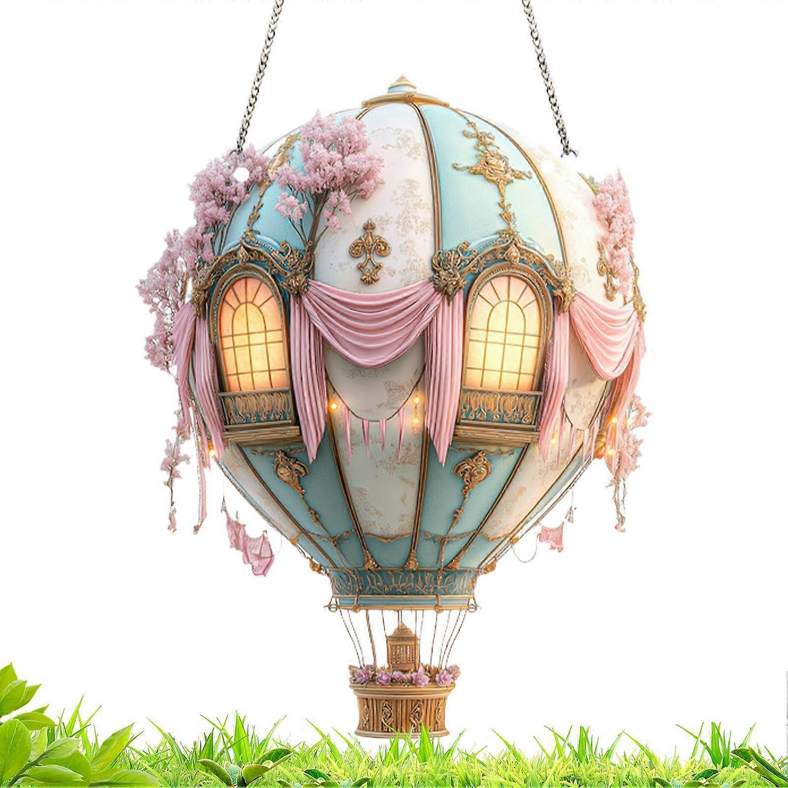 Hot Air Balloon Solar Lantern 2D Acrylic Model Window Pendant For Gatherings, Weddings, Camping, Garden, Patio Farmhouse