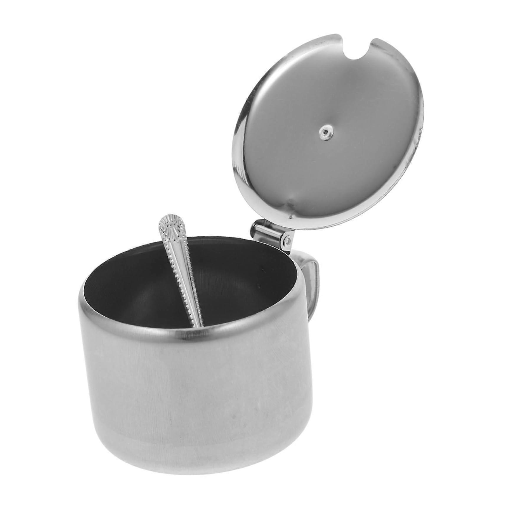 Stainless Steel Sugar Bowl with Lid and Spoon, Durable Condiment Container for Kitchen and Restaurant