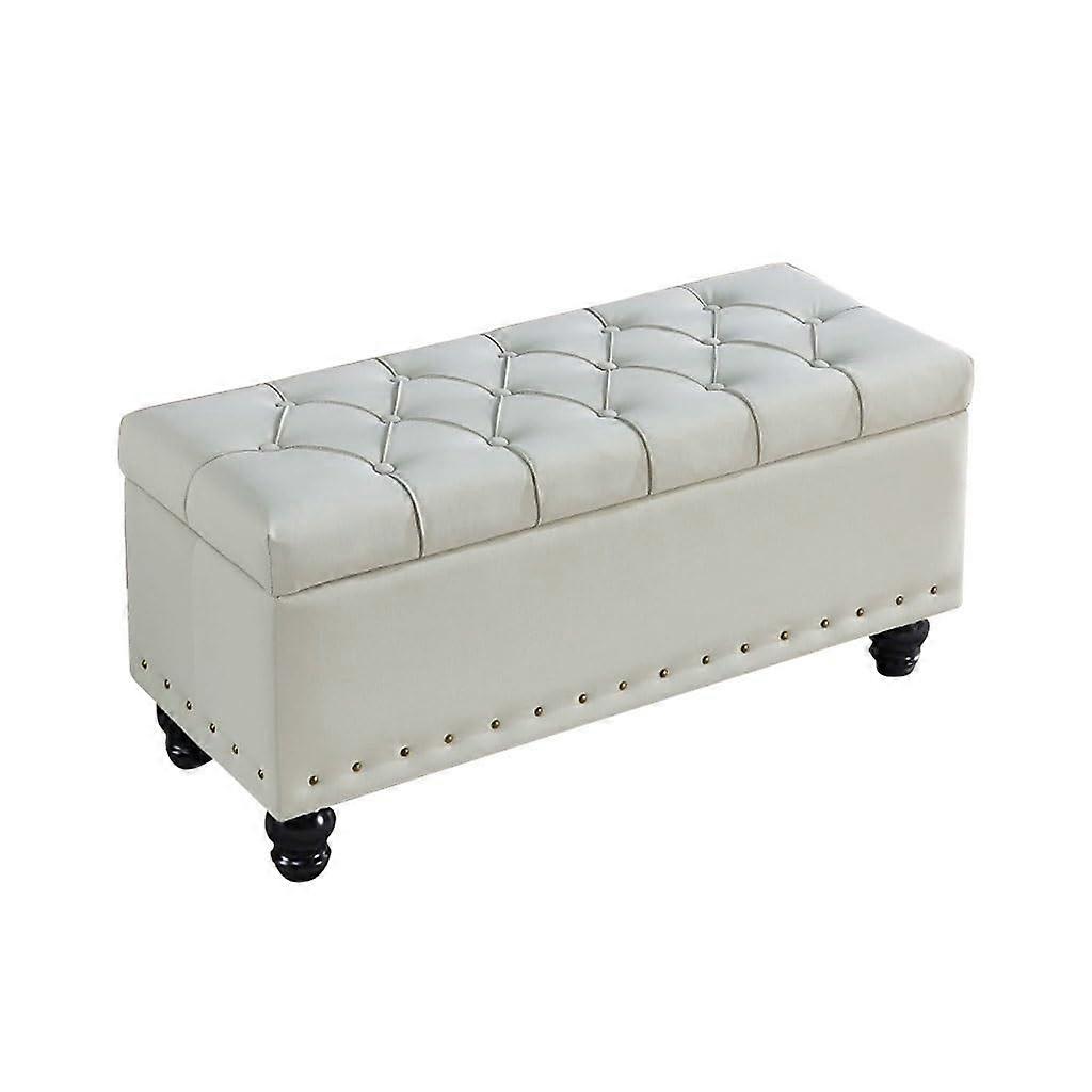 Beige Rectangular Storage Ottoman with Lift , Footrest Bench for Bedroom or Entryway, Wooden Legs