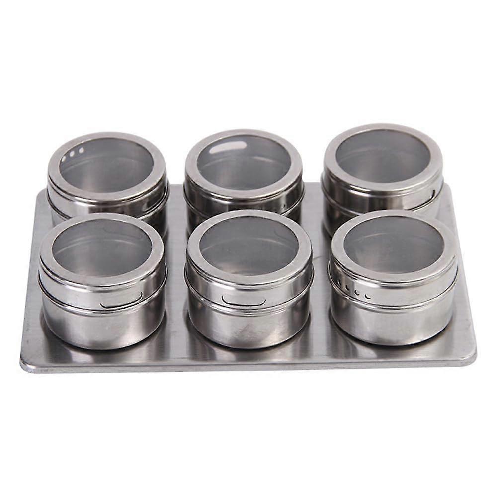 Set of 4 Magnetic Spice Jars with Clear Rotating Lids, Stainless Steel Containers for Kitchen Storage