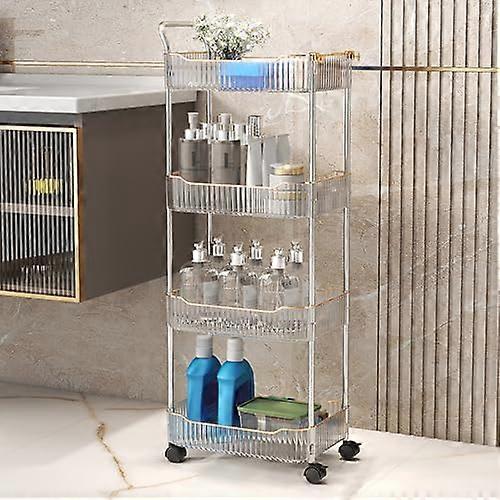 Acrylic Rolling Cart 4Tier, Mobile Storage With Lockable Wheels, Clear For Kitchen And Bathroom Organization