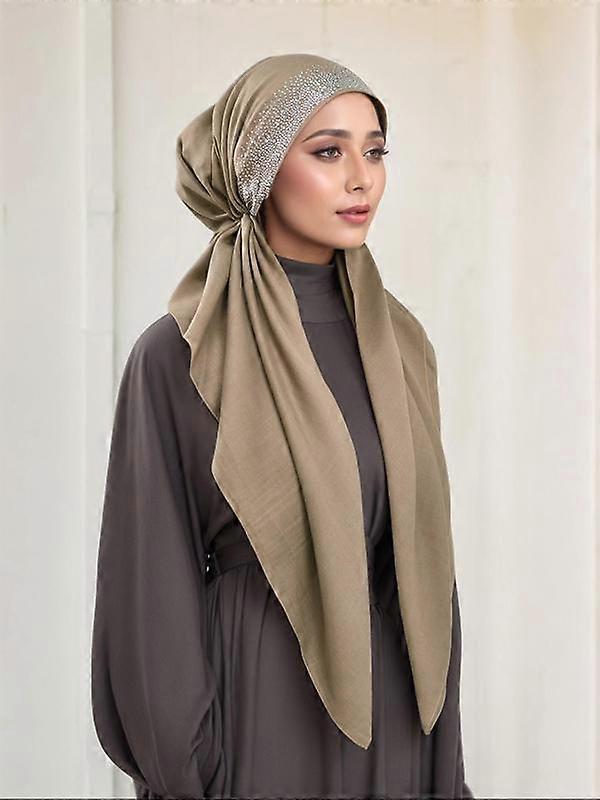 Women's Solid Color Rhinestone Decor Instant Hijab, Modest Fashion Breathable Hijab for Daily Wear, Women's Islamic Clothing for All Seasons