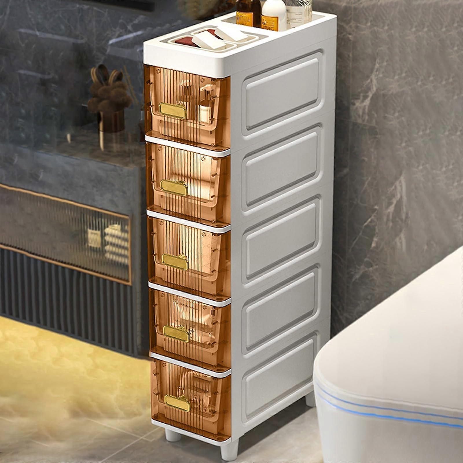 Slim Bathroom Storage Unit Tall Vertical Floor Cabinet With Chest Of Drawers Transparent Orange 18cm x 38cm x 88.5cm