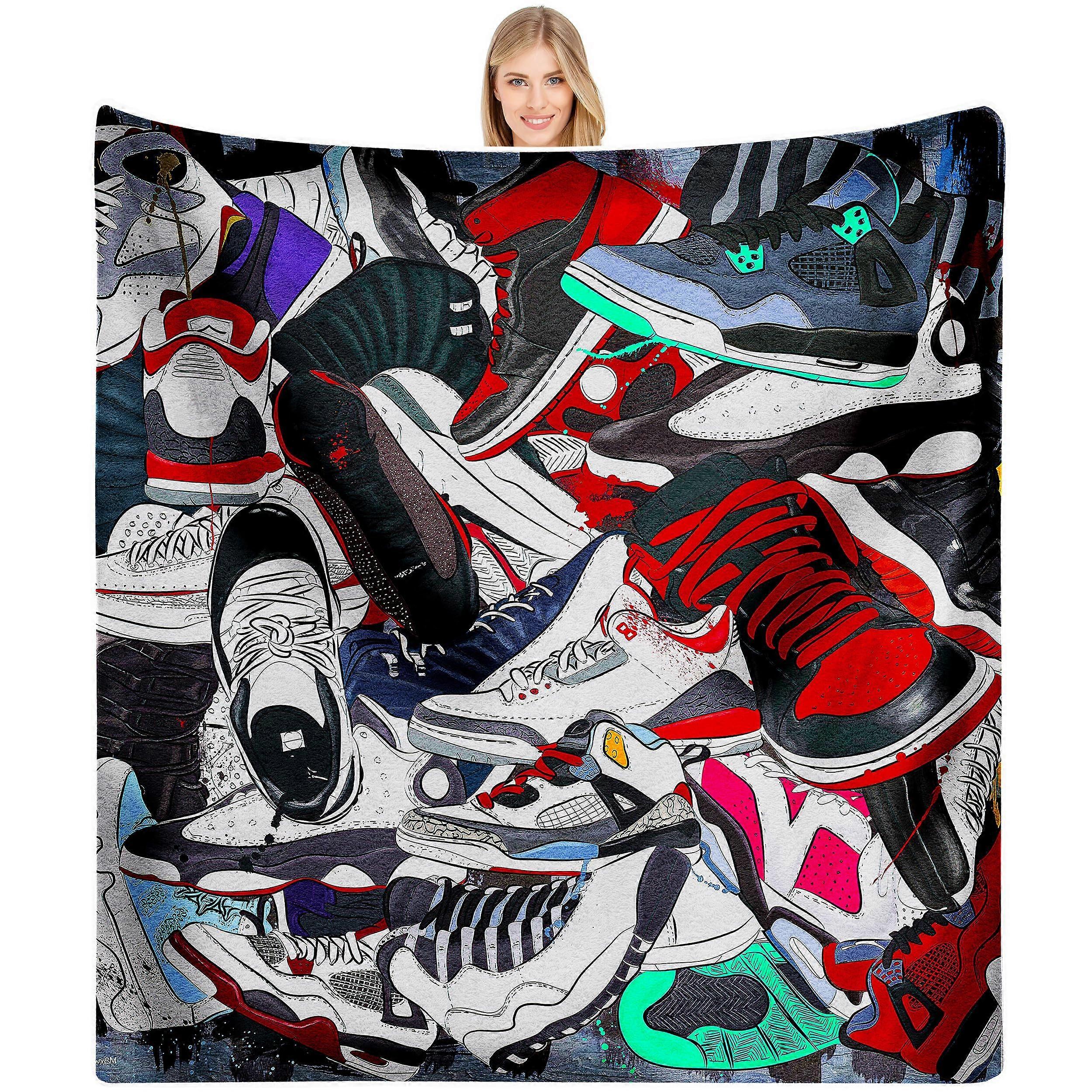 Basketball Sneaker Blanket for Boys 60x50 Inch Soft Flannel Fleece Colorful Throw for Sofa Couch Bed Living Room