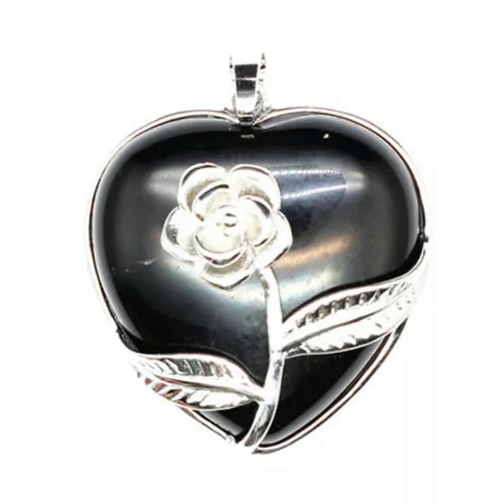 RSAMD Rose Flower Pendant Natural Crystal Stone Gemstone Heart Reiki Chakra Charm Bead-1PC (Random Pick)-Obsidian (#1)