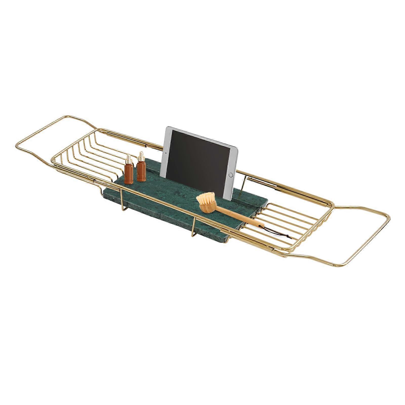 Adjustable Stainless Steel Bathtub Tray with Marble Finish, 44lbs Capacity Expandable Bath Caddy