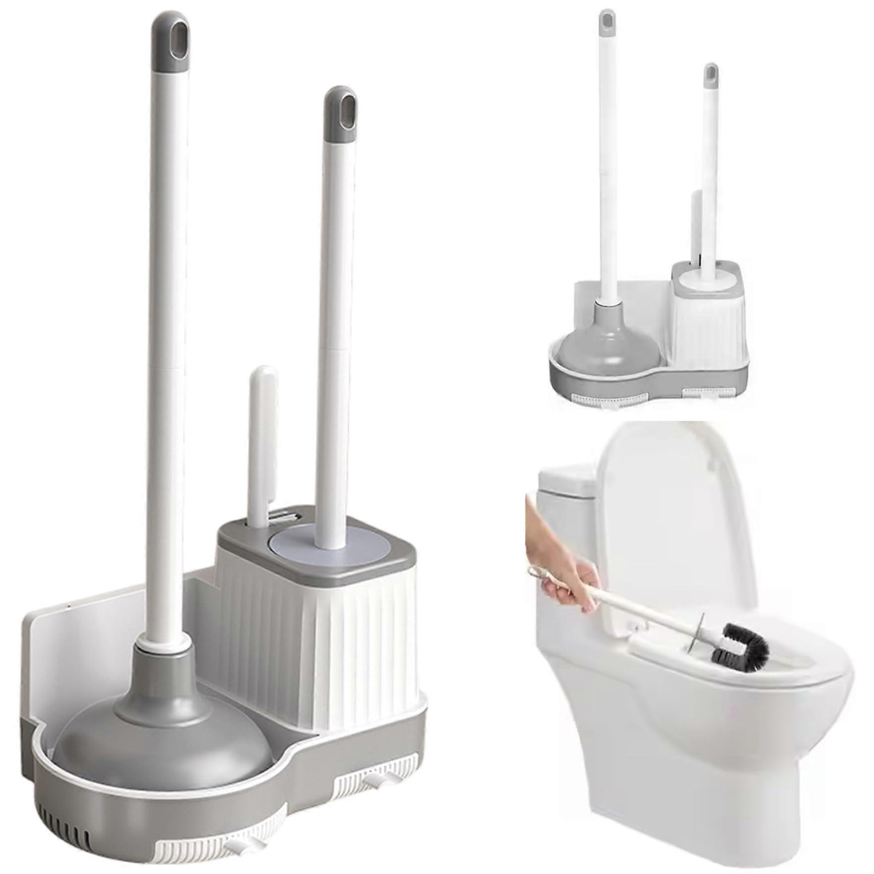 3in1 Toilet Brush and Plunger Set with Crevice Brush, Wall or Floor Mount QuickDrying Holder for Bathroom Cleaning