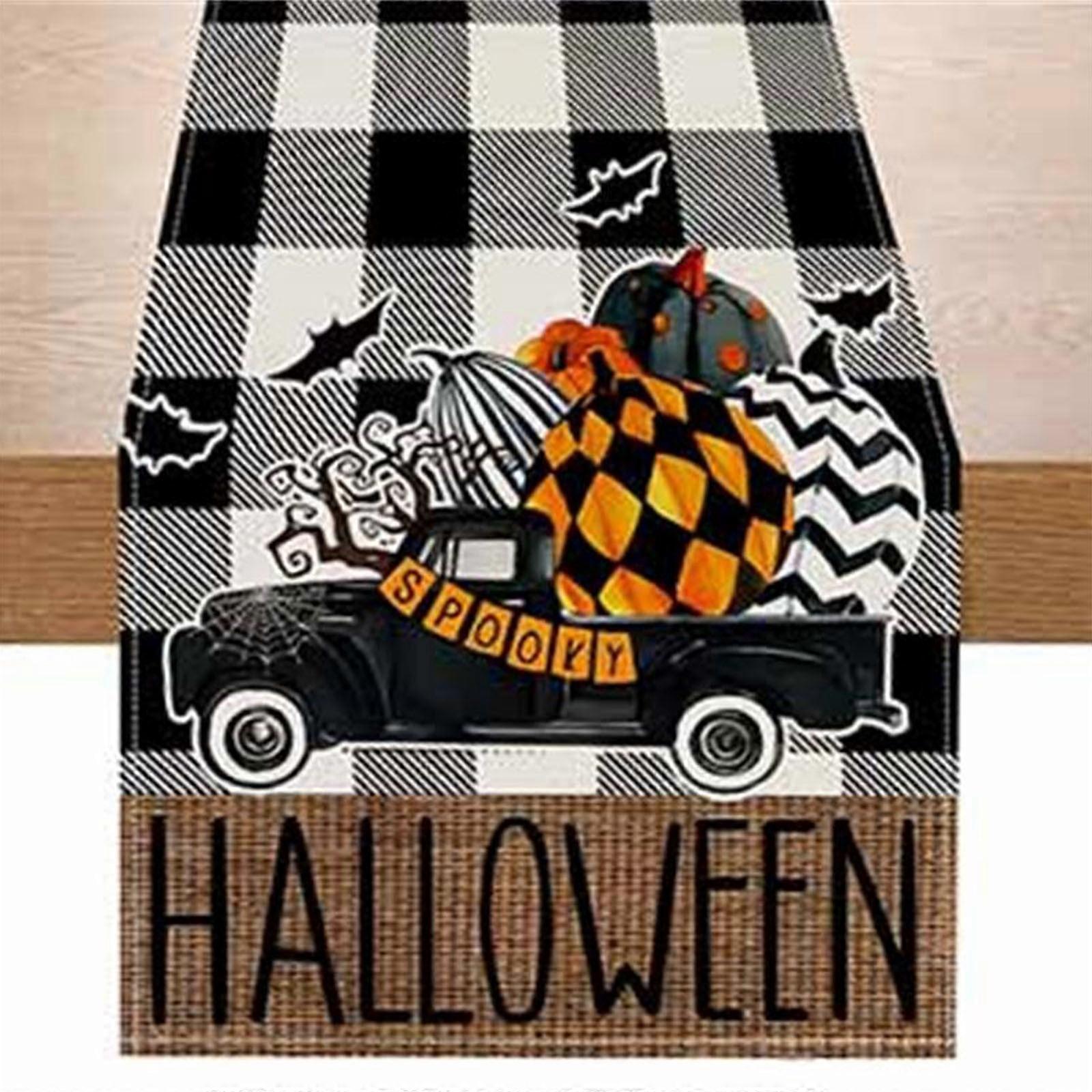 Halloween Linen Table Flag, Pumpkin Skull Printed Tablecloth - Compatible with Viflosae, Holiday Party Decoration, Tea Flag, Party Favors