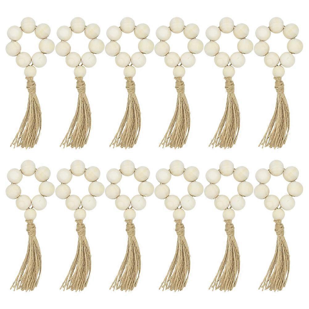 12 Pcs Wooden Bead Napkin Rings Table Buckles for Party Decor Fringe Manual Dining Decors Dinner Beaded