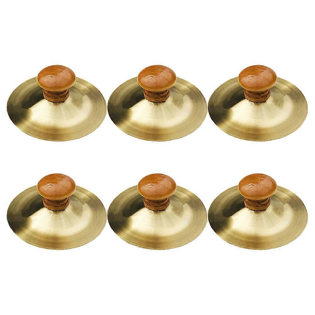6 Pcs Hand Cymbals Small Marching Copper Finger with Wooden Handles Percussion Instrument for Adults Kids Party