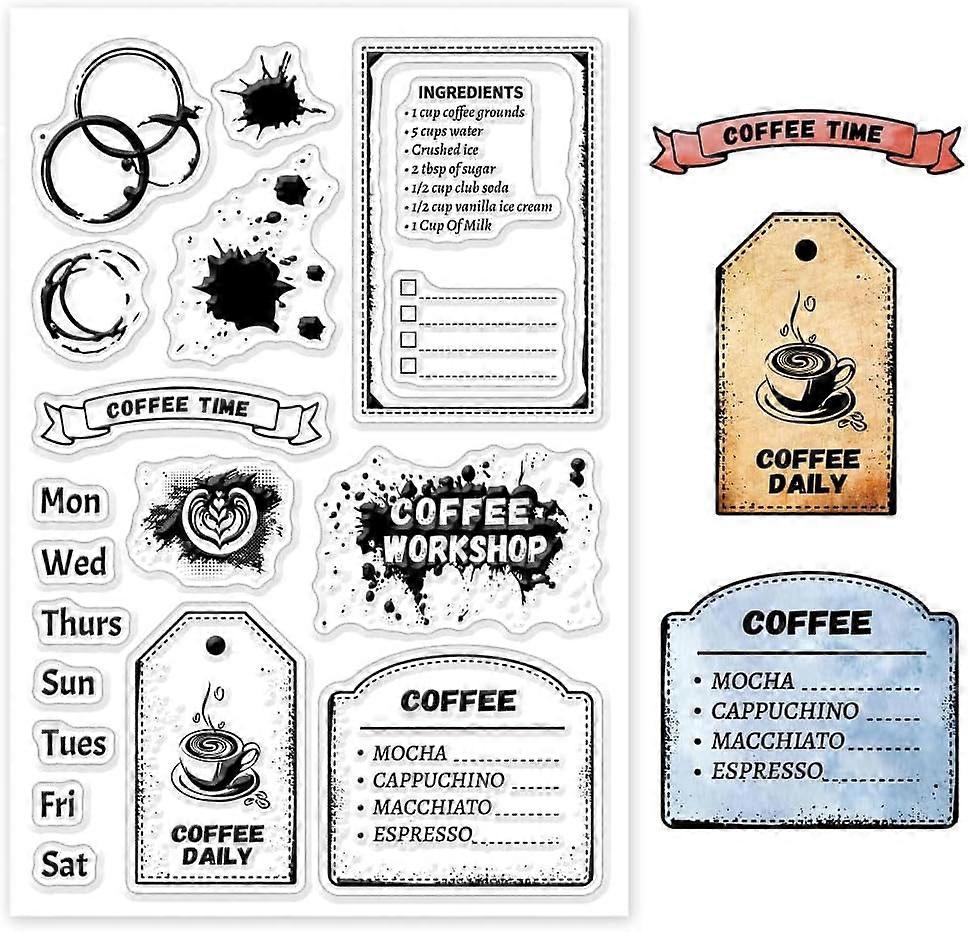Coffee Menu Recipes Diary Clear Stamps for Cards, Scrapbooking, Journals - Compatible with DIY Craft Projects, Home Decor