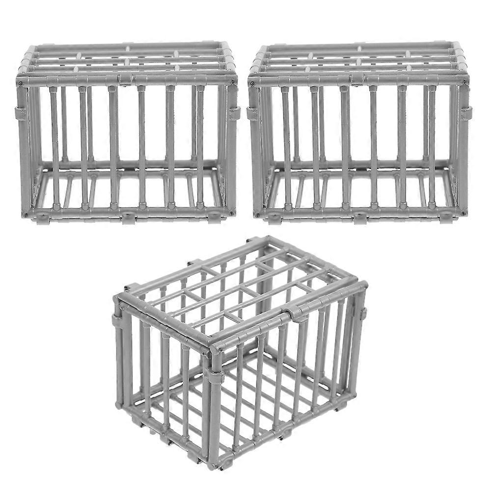 Pet Cage Model Miniature Cage Model for Toys 3Pcs Silver Plastic Set