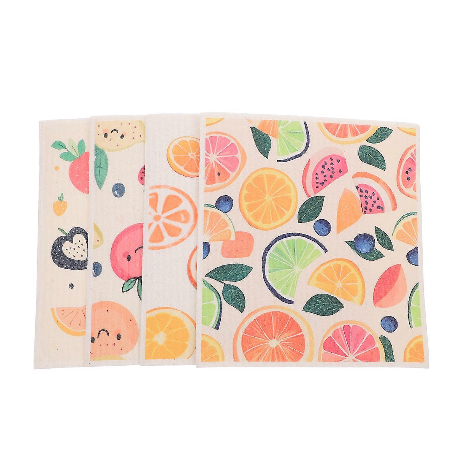 Fruit Pattern Kitchen Towels Reusable Dishcloth for Cleaning 4Pcs Set