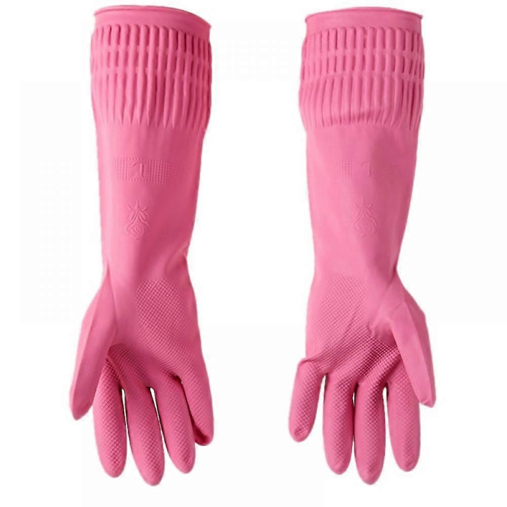 JANDEL Latex Cleaning Wash Gloves Waterproof Anti-Corrosion Non-Slip Reuable Household Gloves, Pink S