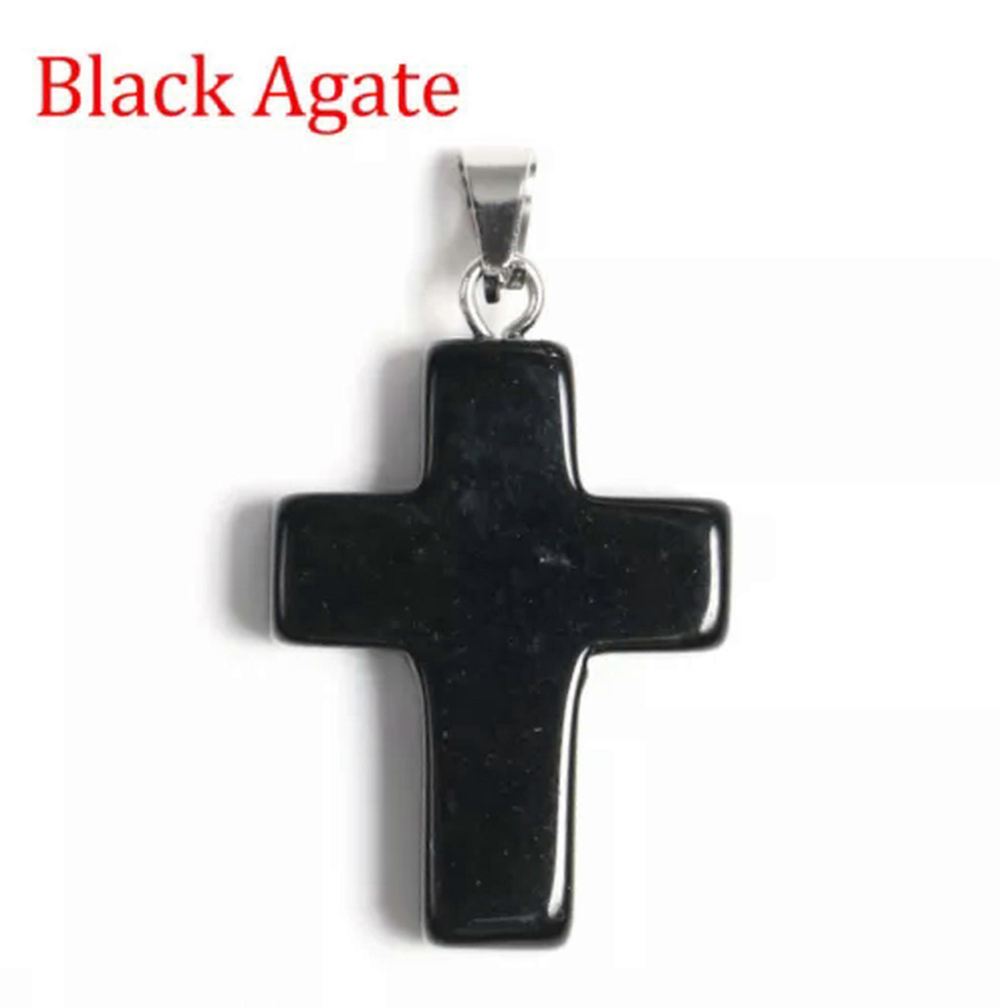 RSAMD Chakra Cross Pendant Natural Quartz Crystal Stone Crucifix Shape Decor DIY Mixed-5PCS (Random Pick)-Black Agate