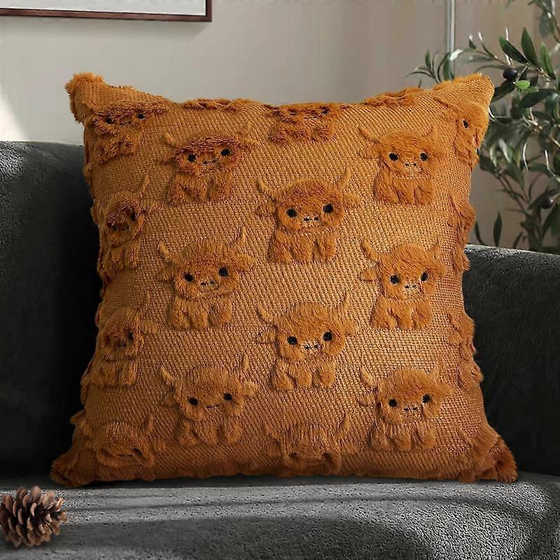 Highland Cow Pillow Covers 18x18 Cow Home Decor Farmhouse Pillow Covers Soft Plush Faux Fur Wool Pillowcases for Sofa Living Room, Gifts for