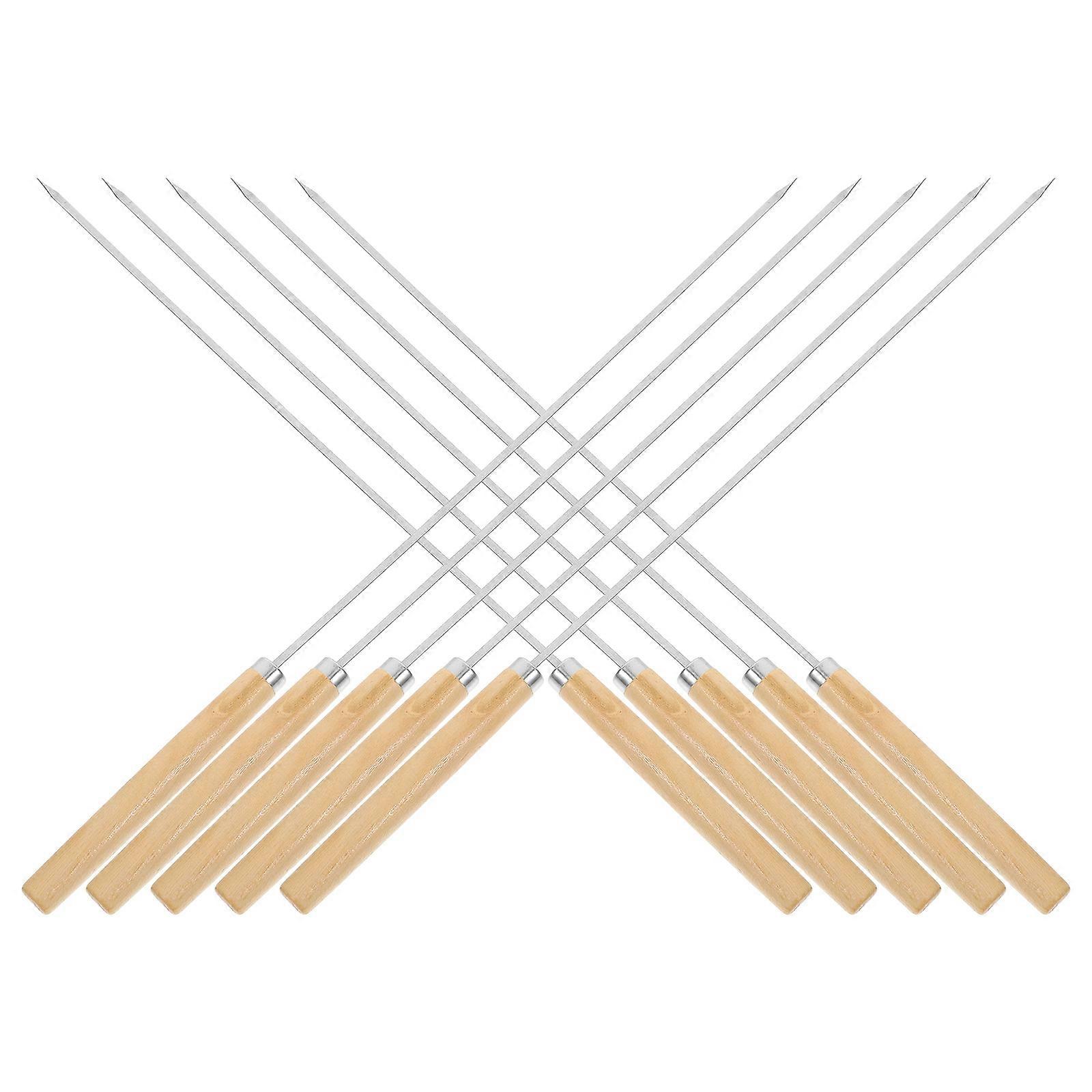 Wood Handle Barbecue Skewers Stainless Steel for Meat Grilling 50Pcs