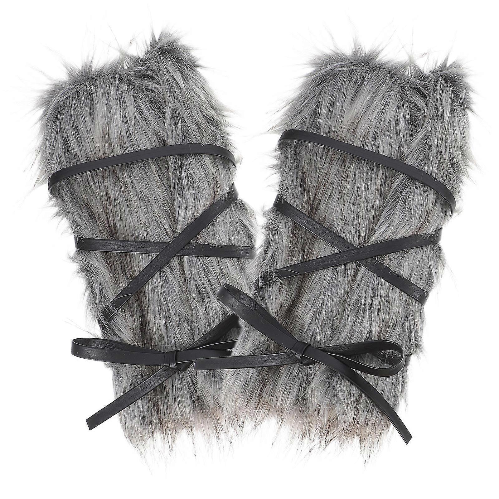 Grey Faux Fur Viking Leg Warmers for Women and Men 2Pcs Warm Boot Covers