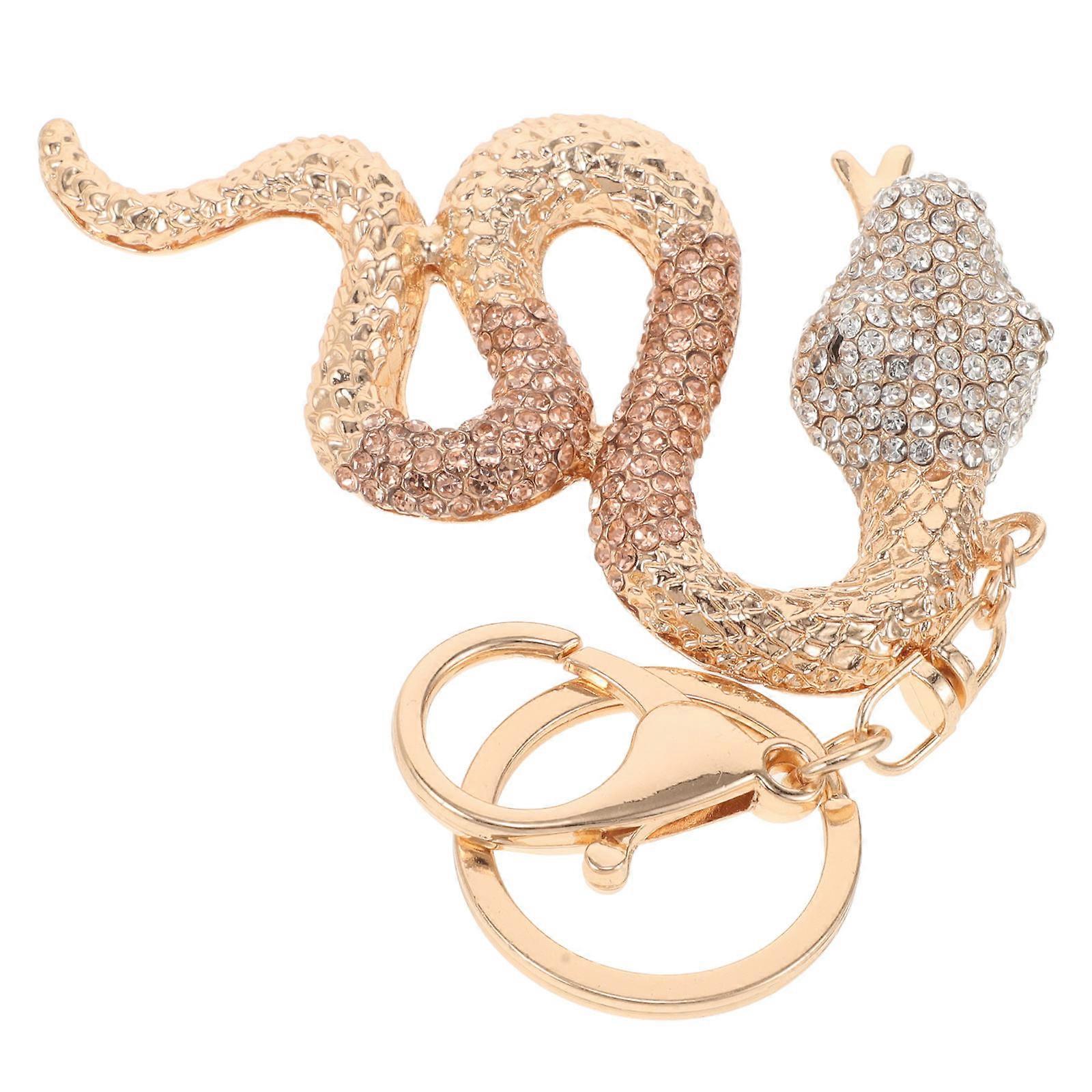 This keychain features a dazzling snake pendant, ideal for celebrating the Year of the Snake. Adorned with sparkling rhinestones, it adds a touch of elegance to your car keys, handbag, or backpack. Simply attach it to your desired accessory using the sturdy keyring, and enjoy the charm and sophistication it brings to your everyday items. Features - Color: Golden -Material:Alloy - Size: 14.90X5.70X0.70cm/5.86X2.24X0.28in - design: featuring a dazzling rhinestones craftsmanship, the snake pendant keychain shines brilliantly and catches everyone's eye. -Versatile use: this keychain can be used not only as a car key holder but also as a stylish accessory for women's handbags or as a decorative keychain -Year of the snake souvenir: as a commemorative item for the year of the snake, it symbolizes good fortune and prosperity -Alloy materials: made from practical alloy materials, this keychain is built to last and resistant to fading, ensuring longterm use -Unique shape: the distinctive design of the zodiac snake pendant showcases individuality and fashion, making it a standout accessory Package list: 1 x snake keychain