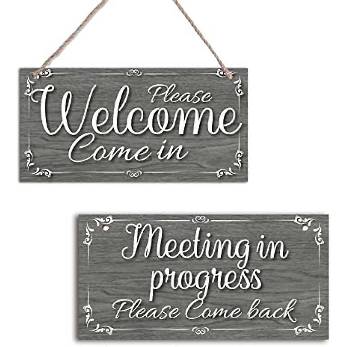 Natural Wooden Store Sign - Welcome/Come Back, Reversible, Compatible with Office & Meeting Room Use