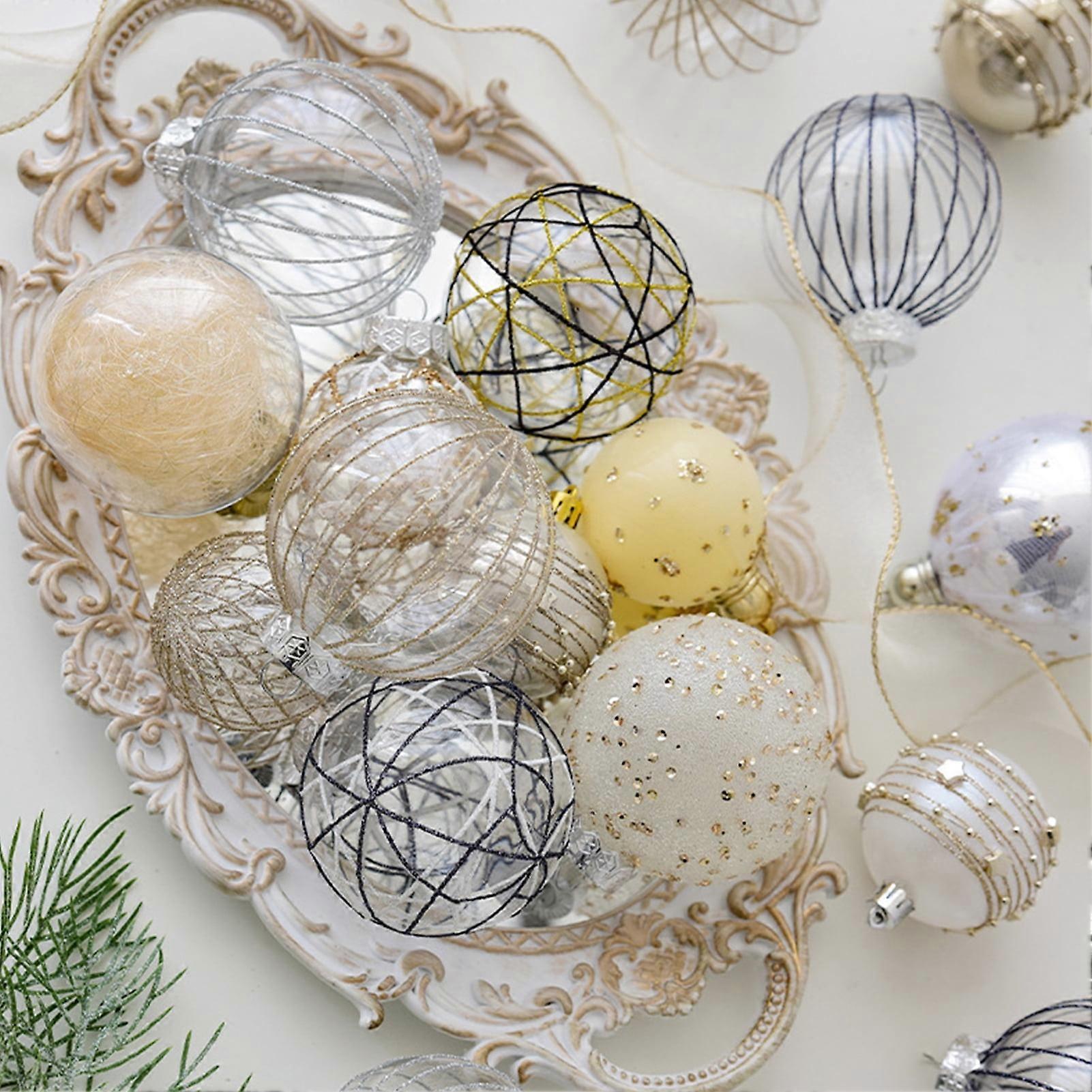 SUSUchens 6Pcs 8cm Shatterproof Christmas Ball Ornaments, Clear Hanging Decor for Tree, Wedding, Holiday, Party, Home, Silver White