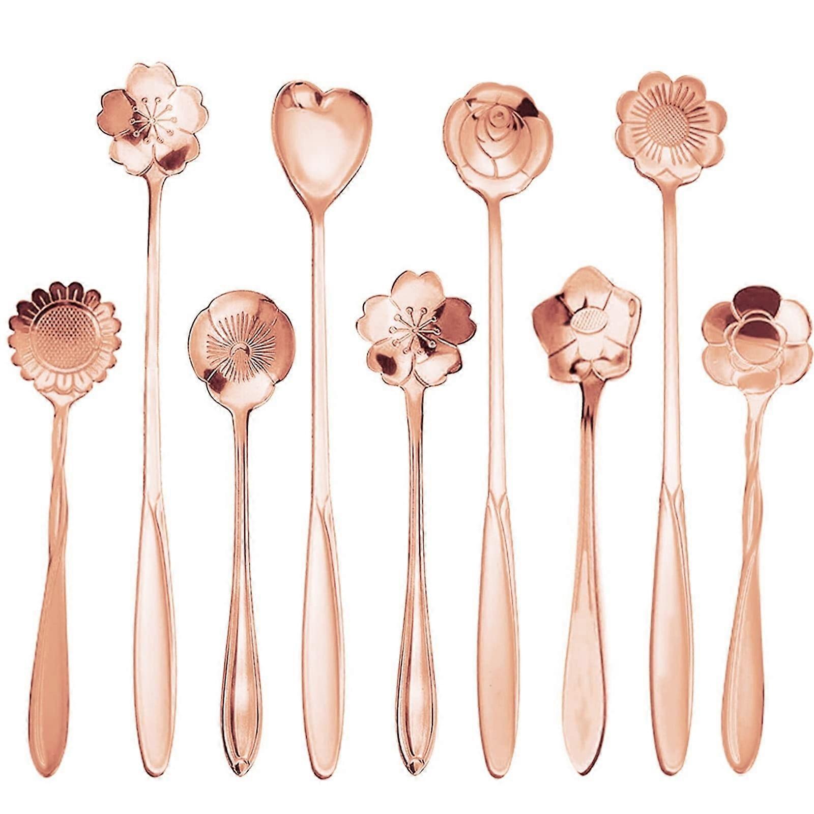 8Pcs Rainbow Flower Spoons, Stainless Steel Tea Coffee Stirring Spoon Set, Colorful Mixing Sugar Ice Stir Bar, Kitchen Tool Gift (Compatible with