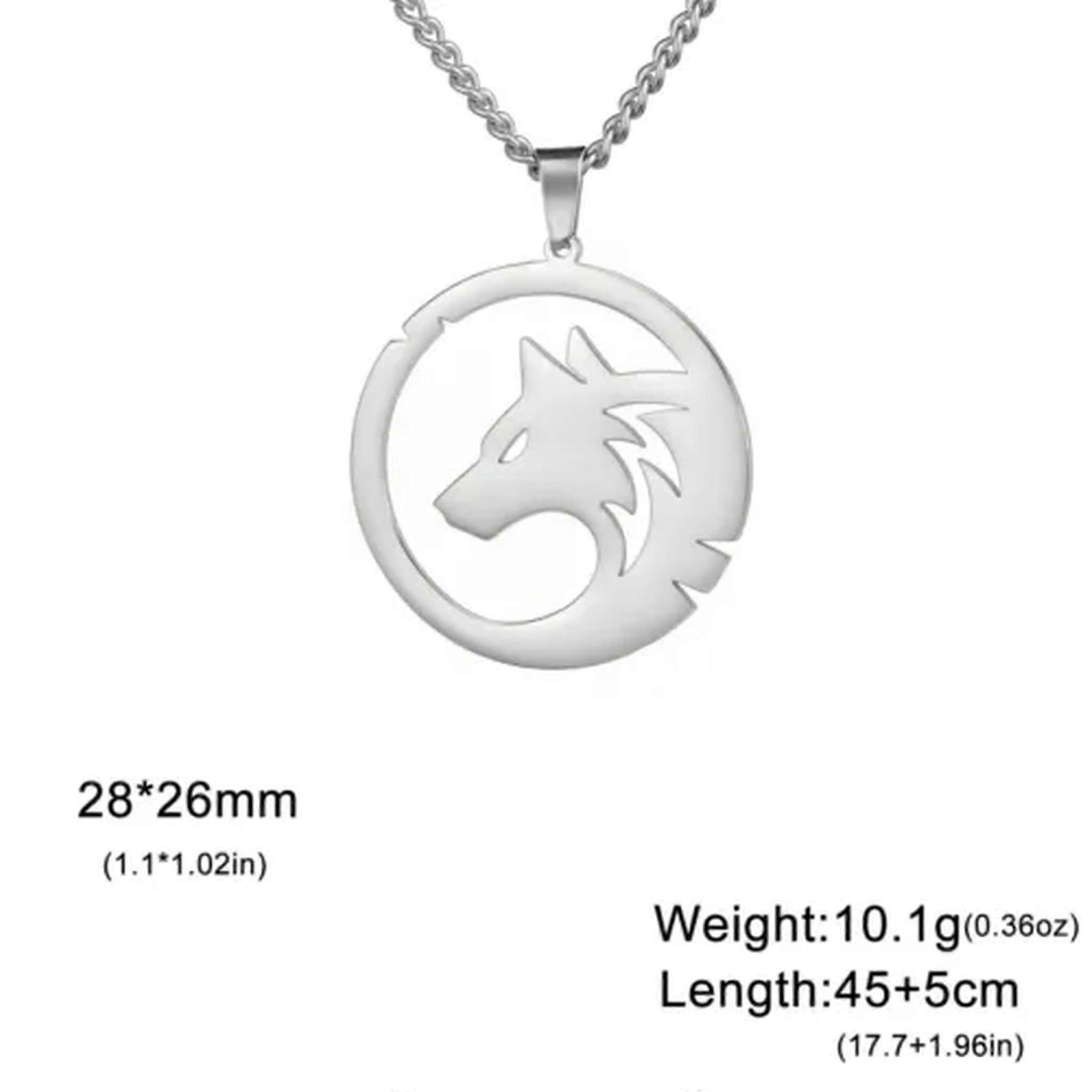 RSAMD Viking Wolf Head Round Pendant Necklace Stainless Steel Animal Jewelry-Steel