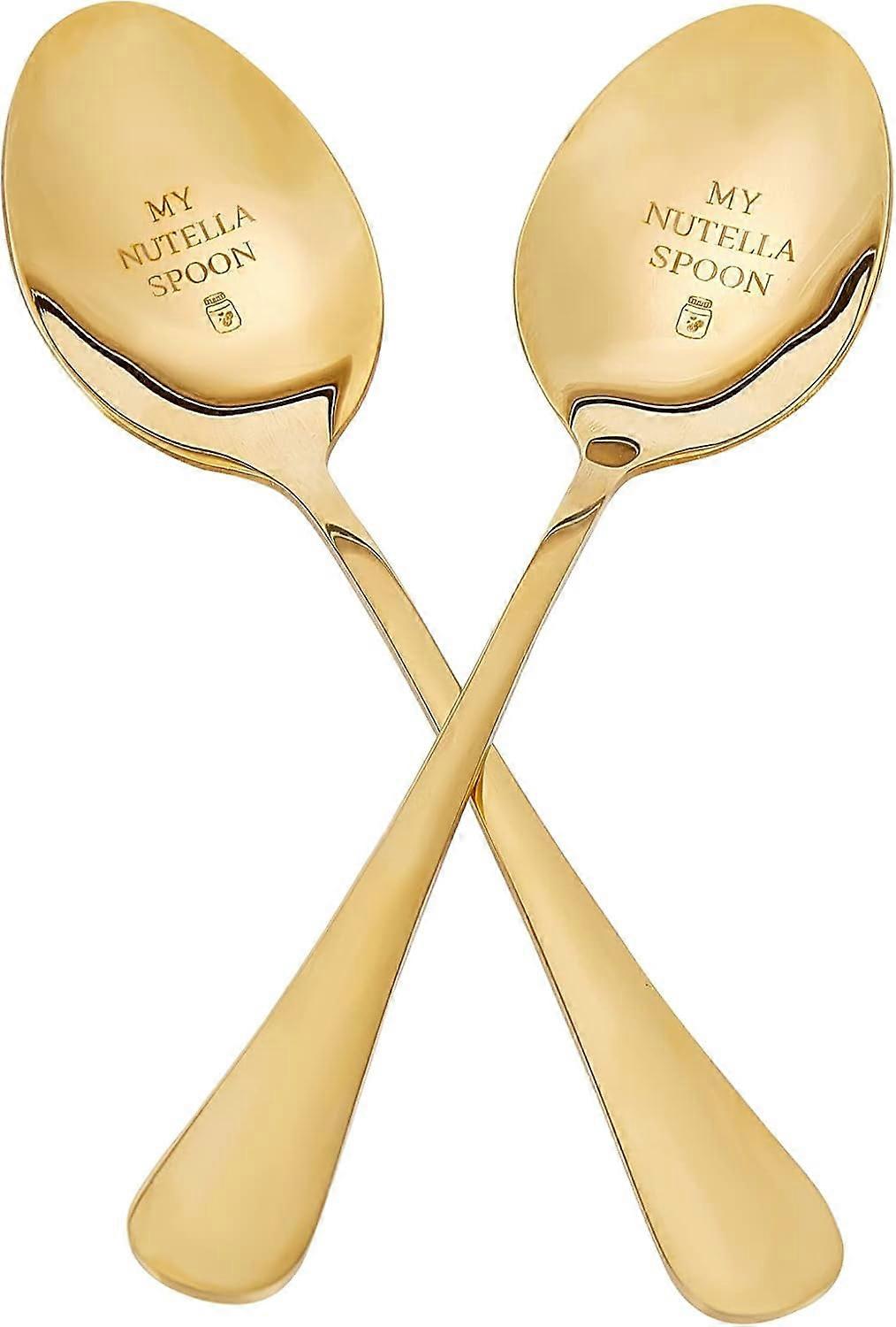 DIY 2Pcs My Nutella Spoon with Gift Box, Golden Engraved Stainless Steel Spoons for Families, Friends, Christmas, Birthday - 7.2''