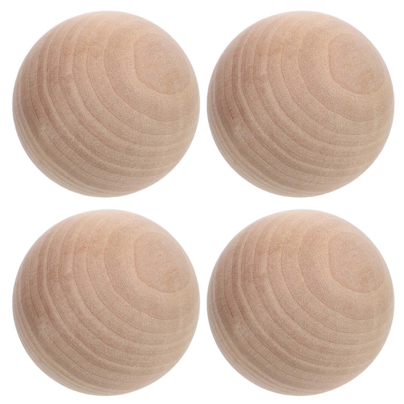 Decorative Wooden Orbs Diy Art Education Students Sphere For Painting 3inch Round Hardwood Balls 4Pcs