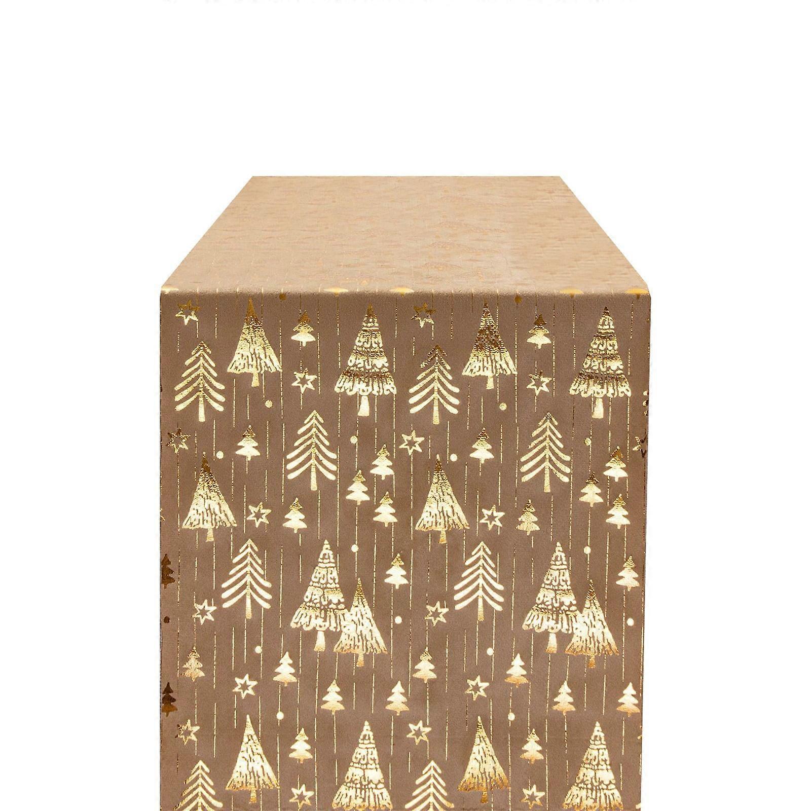Christmas Tree Table Runner - Gold Velvet, Polyester Cotton, Holiday Printed Flag | Compatible with Daiosportswear