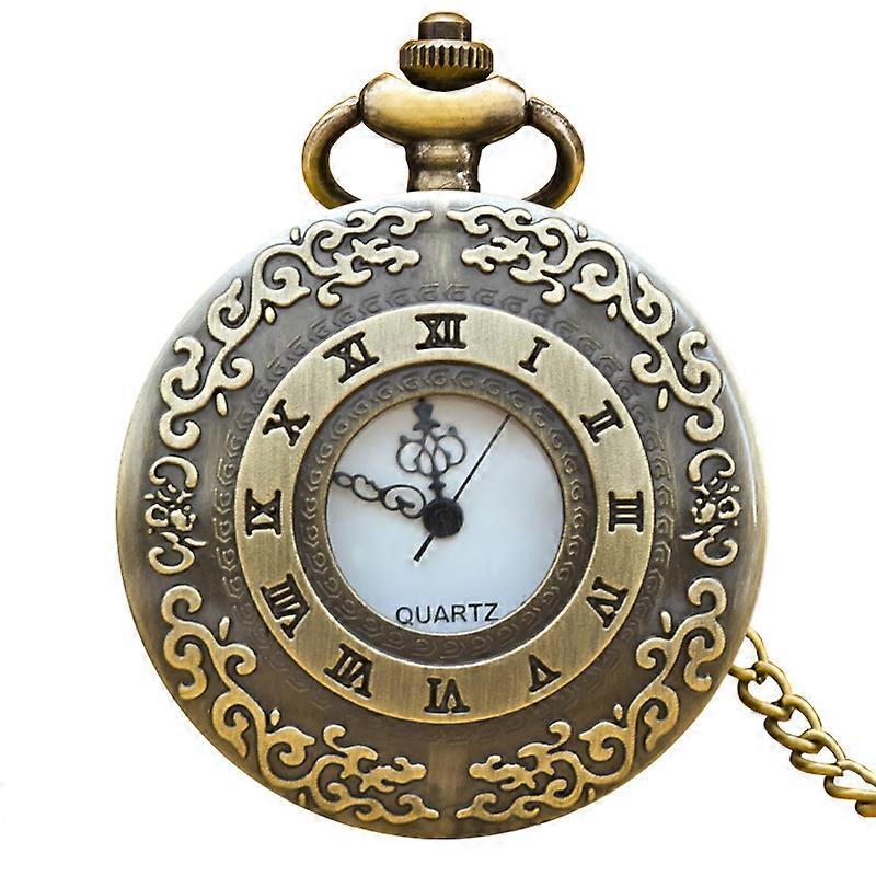 Vintage Glamour Bronze Unisex Fashion Roman Numerals Carved Quartz Steampunk Pocket Watch Women Men Necklace Pendant Chain Gift