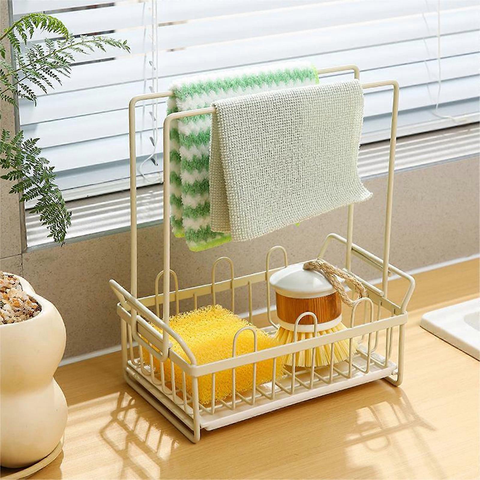 Quinlirra Sponge Cloth Rack, compatible with kitchen faucet, holds sponge, cloth, detergent, steel wire ball, drainage storage rack