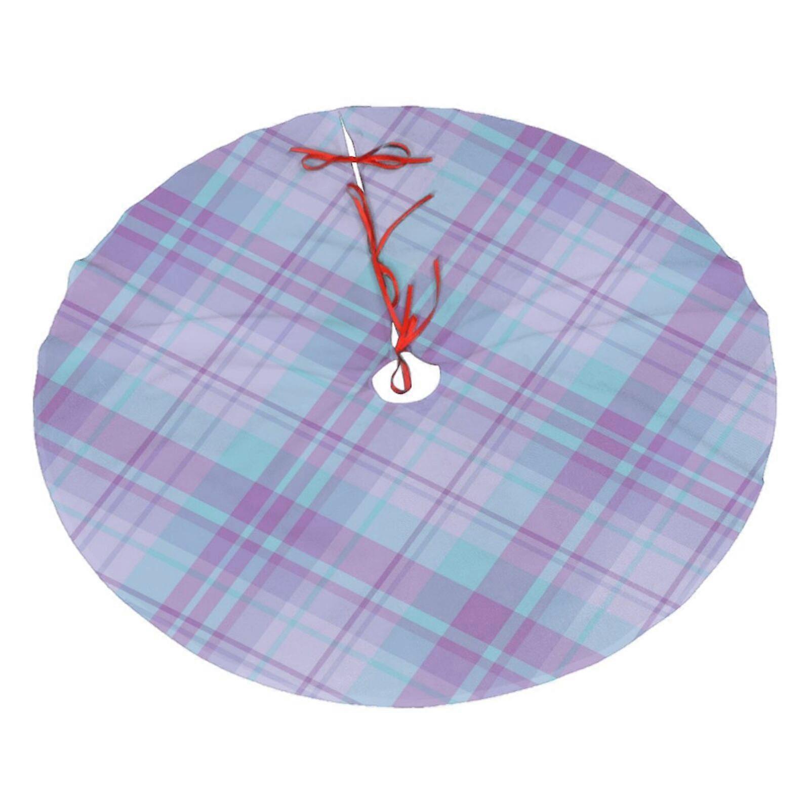 Violet And Light Blue Plaid Christmas Tree Skirt, Soft And Funny Merry Christmas Tree Collar Farmhouse Xmas Holiday Decoration 30"
