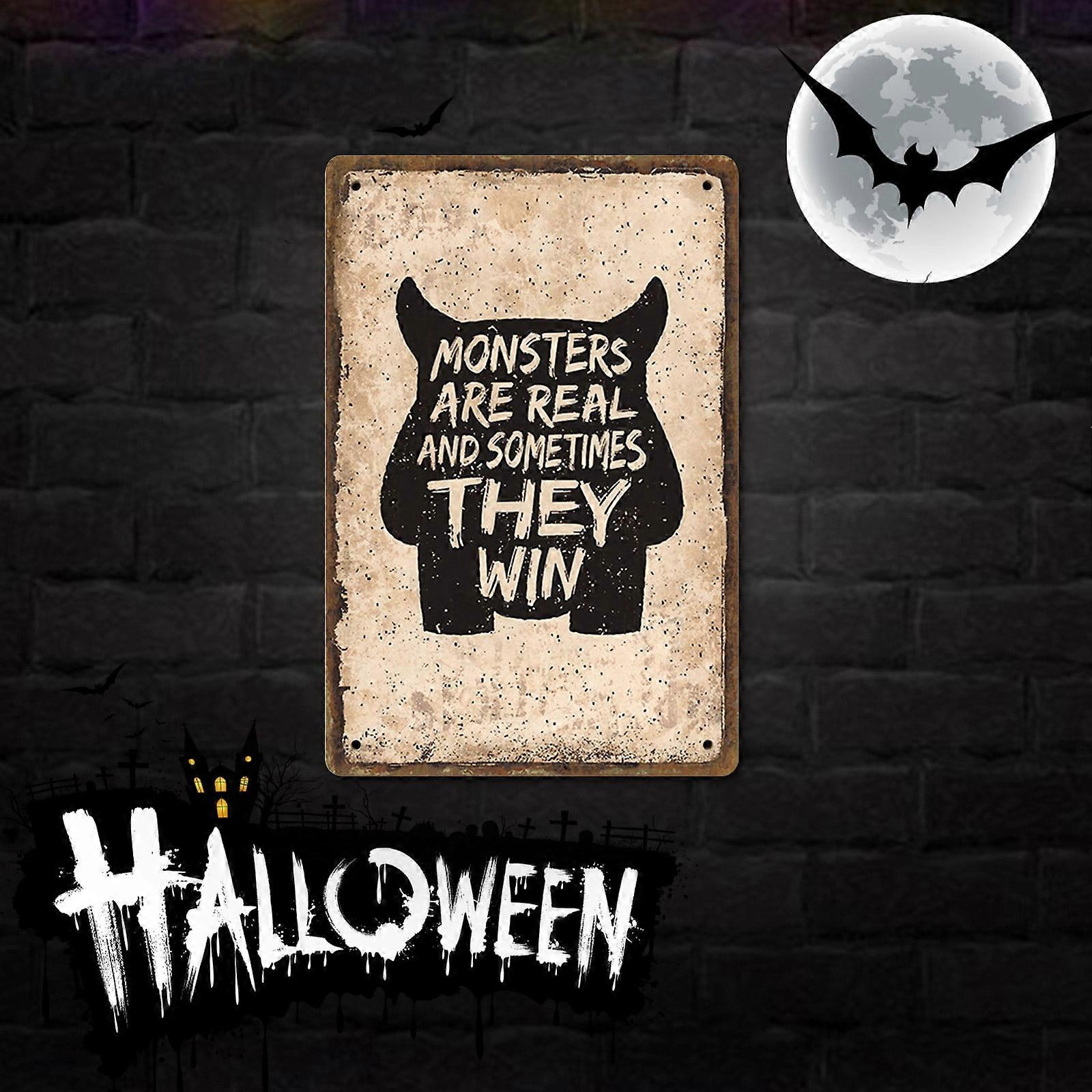 FloHua 12x8 Inch Halloween Metal Sign, Indoor Wall & Door Decoration, Compatible with Halloween Party Decorations