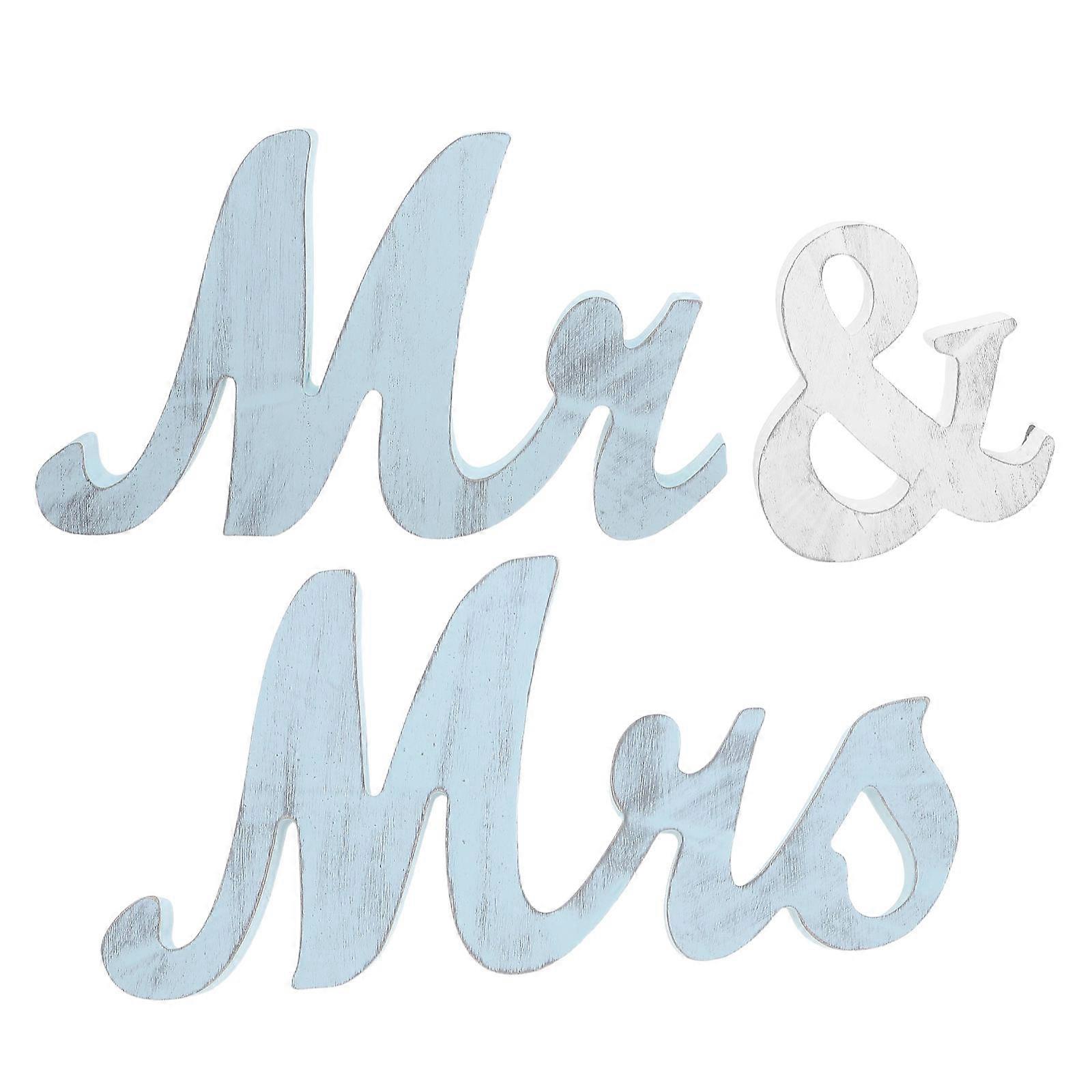 Wooden Mr and Mrs Signs Wedding Decor Blue Elegant Design Table Props for Weddings 36.5 x 12 inches