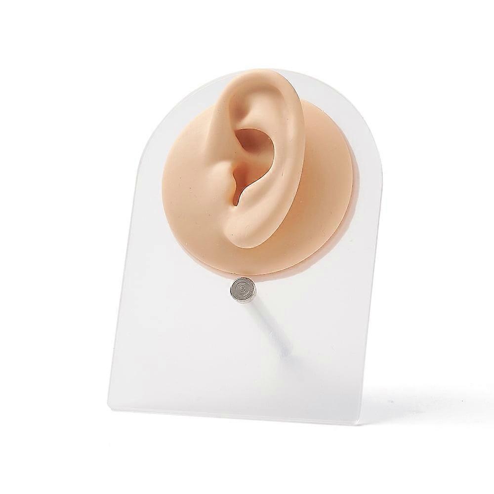Soft Silicone Ear Display with Acrylic Stand, 8x5.1x10.6cm; Silicone 6.4x6.3x2.7cm, PeachPuff, for Earring & Piercing Practice