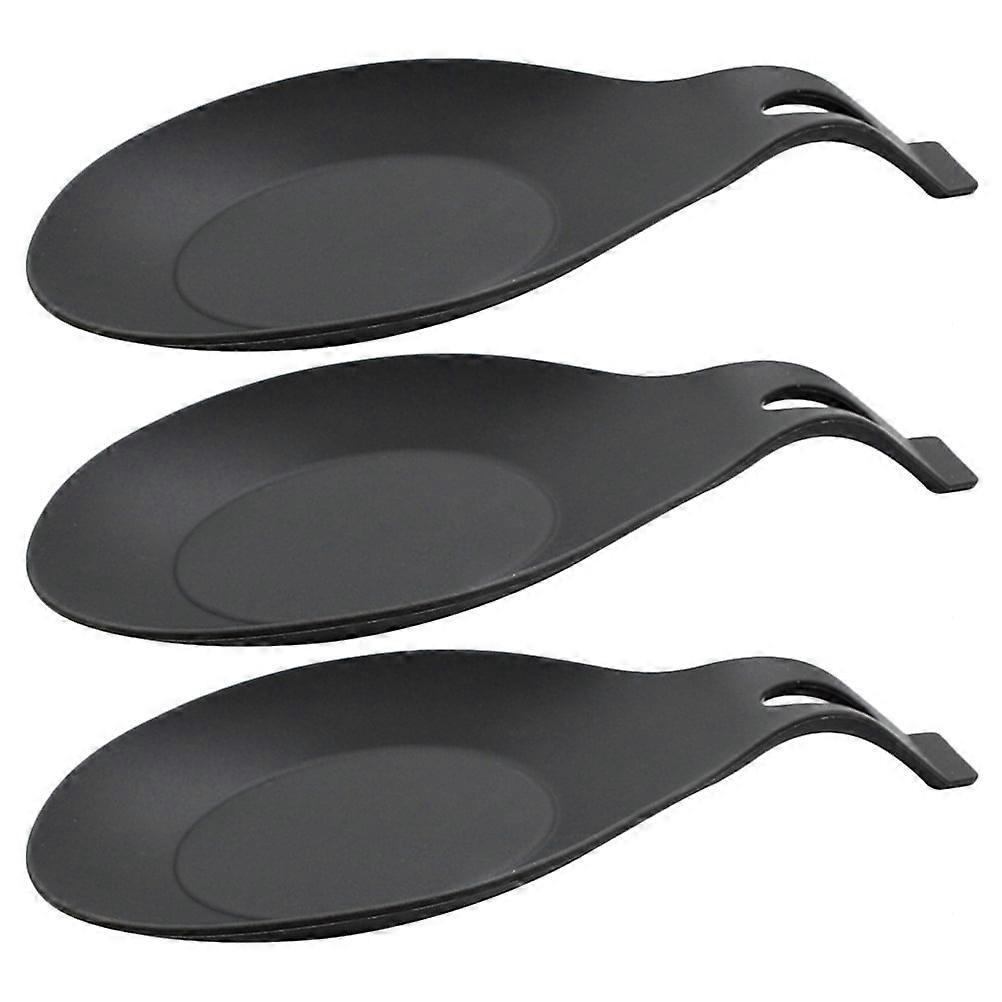 Silicone Spoon Rest Tray Cooking Utensil Table Mats Black Serving Utensils Stand Rubber Resting Dish 3 Pcs