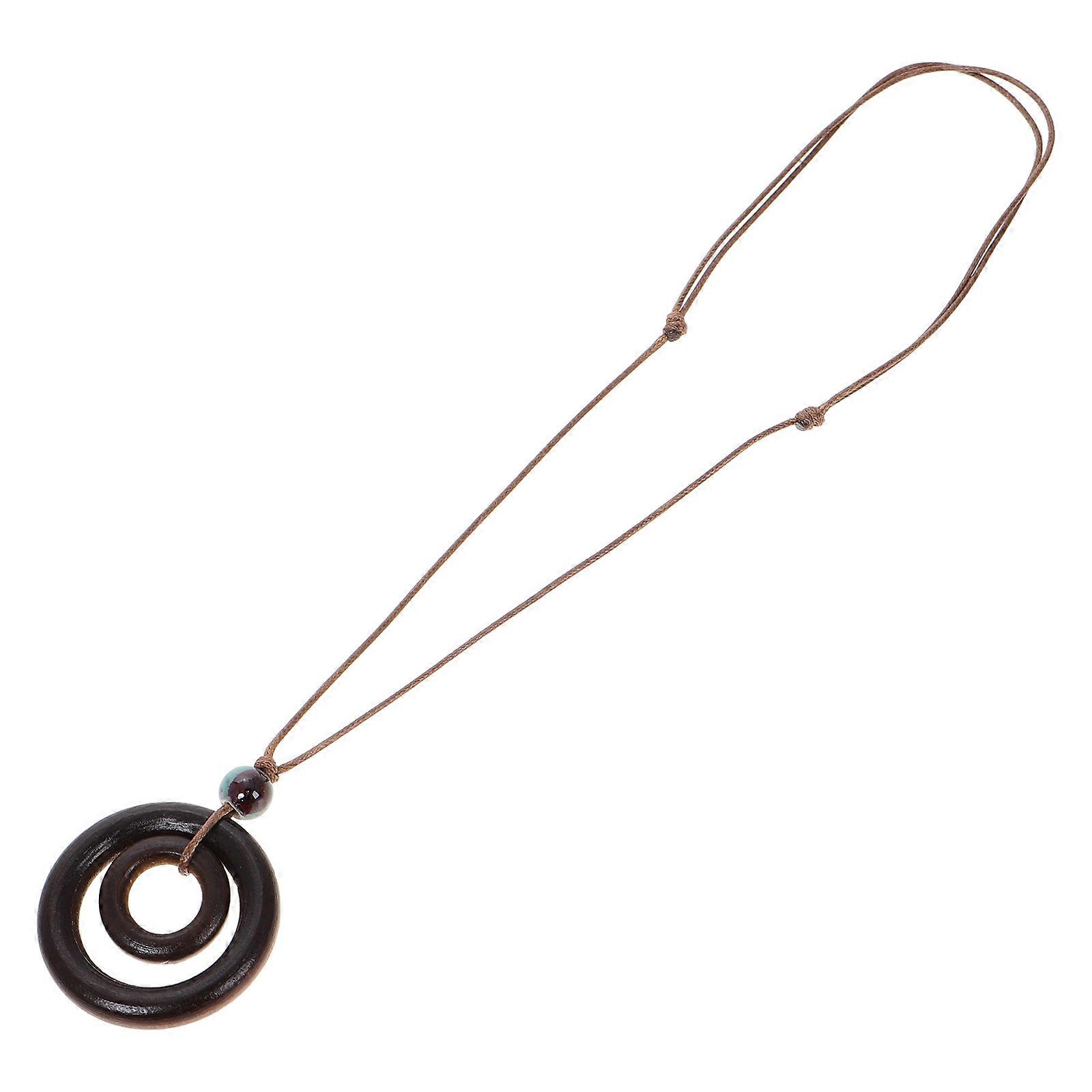 Wood Necklace Statement Bohemian Vintage Simple But Style Long Wooden Circle Pendant Necklace For Everyday Life 1Set